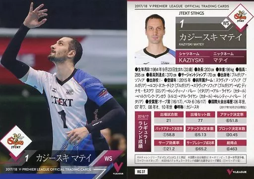 Nome do produto em japonês: スポーツ/レギュラーカード/2017/18 V・プレミアリーグ男子公式トレーディングカード RG 37 [レギュラーカード] : カジースキ マテイ