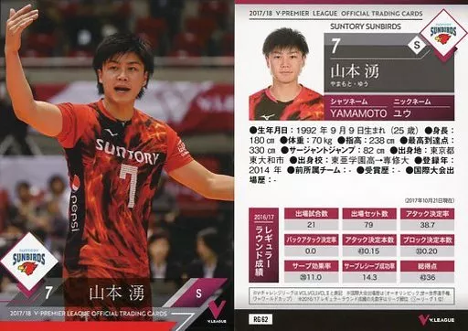 Nome do produto em japonês: スポーツ/レギュラーカード/2017/18 V・プレミアリーグ男子公式トレーディングカード RG 62 [レギュラーカード] : 山本湧