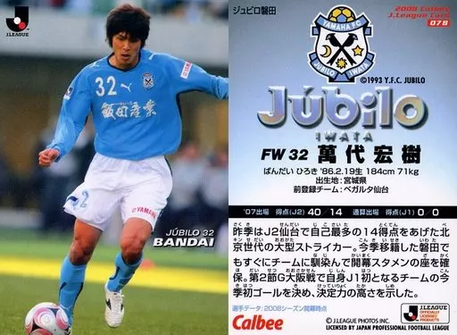 Nome do produto em japonês: スポーツ/ジュビロ磐田/レギュラーカード/Jリーグチップス 2008 第1弾 078 [レギュラーカード] : 萬代 宏樹