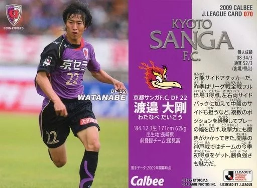 Nome do produto em japonês: スポーツ/京都サンガF.C./レギュラーカード/Jリーグチップス 2009 第1弾 070 [レギュラーカード] : 渡邉 大剛