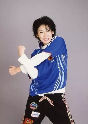 Nome do produto em japonês: 生写真(女性)/宝塚歌劇団(花組)/女優 宝塚歌劇団(花組)/春風弥里/膝上・衣装青黒・ユニフォーム・両手交差・腕伸ばし・歯見せ・背景グレー/生写真