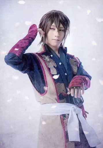Shogo YAMAZAKI (Soji OKITA) / Acima do joelho, pétalas de flores, fundo cinza, imagem de caráter / "Musical" Usuzakura Onishiran "Hijikata Toshizo" Brometo (conjunto de todos)