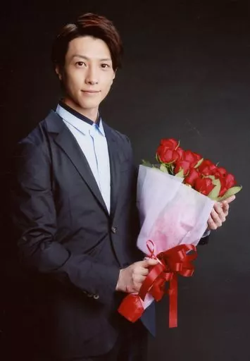 Nome do produto em japonês: 生写真(男性)/俳優 鈴木拡樹/膝上・衣装黒・水色・両手花束持ち・背景黒/鈴木拡樹 ファン感謝イベント in 大阪
