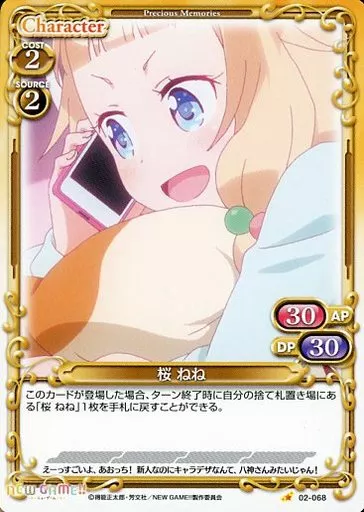 Nome do produto em japonês: プレシャスメモリーズ/C/キャラクター/黄/NEW GAME!! ブースターパック 02-068[C]:桜 ねね
