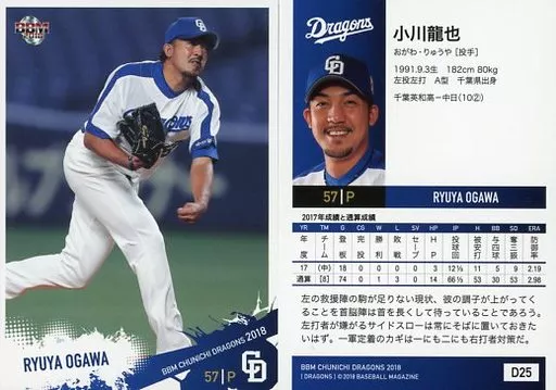 Nome do produto em japonês: BBM/レギュラーカード/BBM2018 中日ドラゴンズ D25[レギュラーカード]:小川龍也