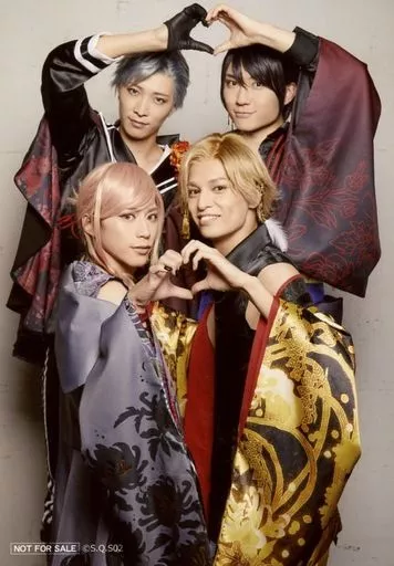 Nome do produto em japonês: 生写真(男性)/俳優 集合(4人)/膝上・手でハート・背景白・花鳥風月衣装・キャラクターショット/SolidS/「2.5次元ダンスライブ『SQ』ステージ『S.Q.S』SolidS&QUELL on STAGE Episode 2『星芒の彼方-月野百鬼夜行綺譚-』」プレミアム席特典ブロマイド RED公演C