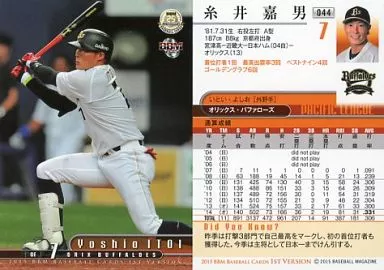 Nome do produto em japonês: BBM/レギュラーカード/オリックス・バファローズ/BBM2015 ベースボールカード 1stバージョン 044 [レギュラーカード] : 糸井嘉男