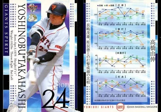 Nome do produto em japonês: BBM/レギュラーカード/BBM2005 読売ジャイアンツ G093 [レギュラーカード] : 高橋由伸