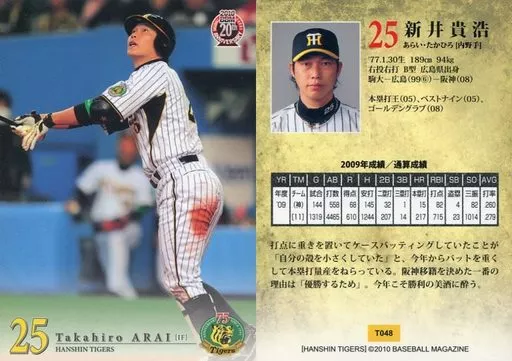 Nome do produto em japonês: BBM/レギュラーカード/BBM2010 阪神タイガース T048 [レギュラーカード] : 新井貴浩