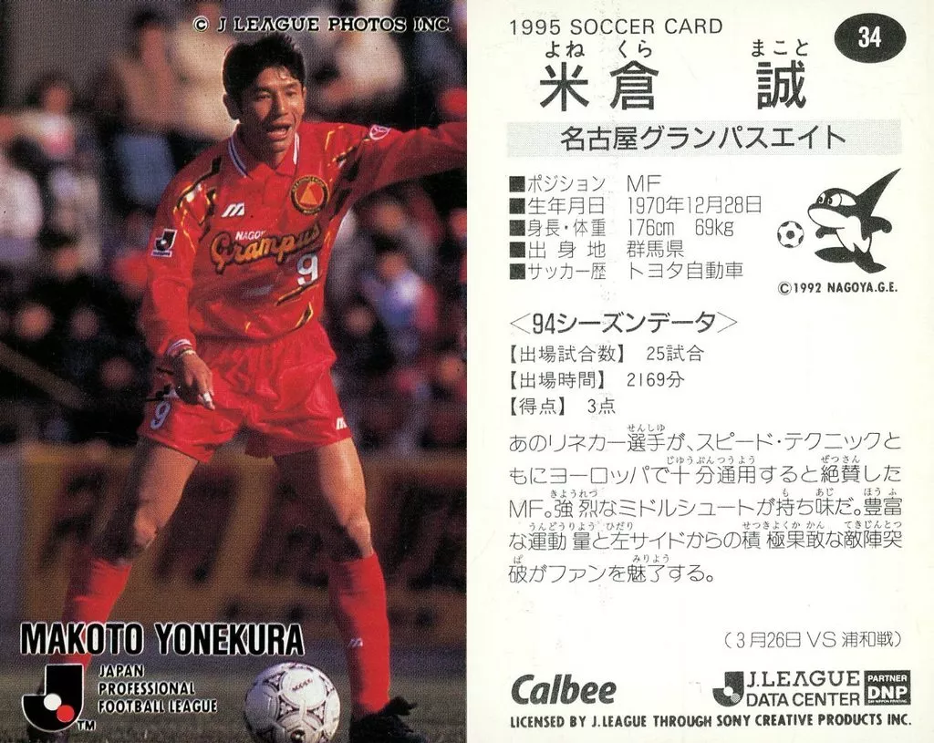 Nome do produto em japonês: スポーツ/Jリーグ選手カード/Jリーグチップス1995/名古屋グランパス 34 [Jリーグ選手カード] : 米倉 誠