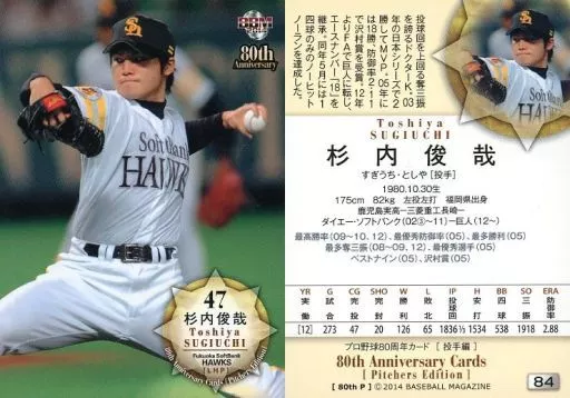 Nome do produto em japonês: BBM/レギュラーカード/福岡ソフトバンクホークス/BBM2014 プロ野球80周年カード・投手編 84 [レギュラーカード] : 杉内俊哉