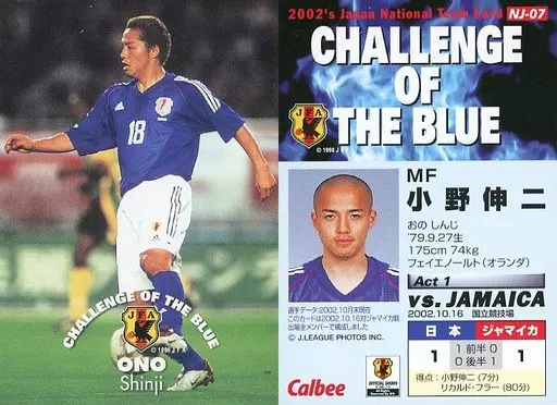 Nome do produto em japonês: スポーツ/日本代表ジャマイカ戦カード/カルビー Jリーグチップス2002 第2弾/フェイエノールト NJ-07 : 小野伸二