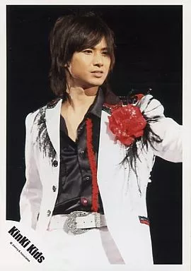 Nome do produto em japonês: 生写真(ジャニーズ)/アイドル/Kinki Kids Kinki Kids/堂本光一/ライブフォト・膝上・ジャケット白・シャツ黒・飾り赤・目線右・背景黒/公式生写真