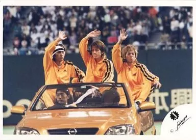 Nome do produto em japonês: 生写真(ジャニーズ)/アイドル/V6 V6/三宅・森田・岡田/横型・衣装オレンジ・黒のジャージ・右手上げ・車に乗り・背景球場/公式生写真