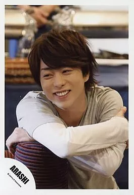 Nome do produto em japonês: 生写真(ジャニーズ)/アイドル/嵐 嵐/櫻井翔/上半身・グレーシャツ・白袖・赤青のボーダー柄ズボン・両腕交差・目線左・笑顔/公式生写真