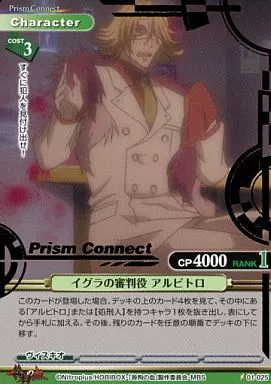 Nome do produto em japonês: プリズムコネクト/C/キャラクター/緑/咎狗の血 ブースターパック 01-025[C]:イグラの審判役 アルビトロ(金箔押し)