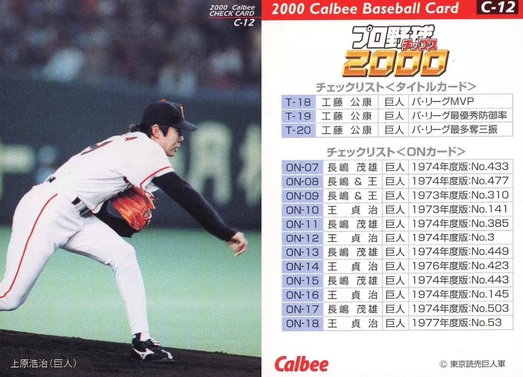 Nome do produto em japonês: スポーツ/2000プロ野球チップス第2弾/巨人/チェックリスト C-12:上原 浩治