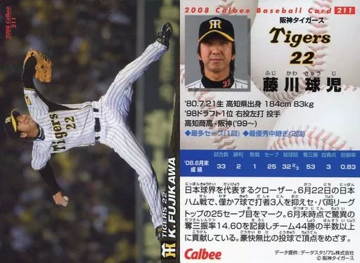 Nome do produto em japonês: スポーツ/2008プロ野球チップス第3弾/阪神/レギュラーカード 211:藤川 球児