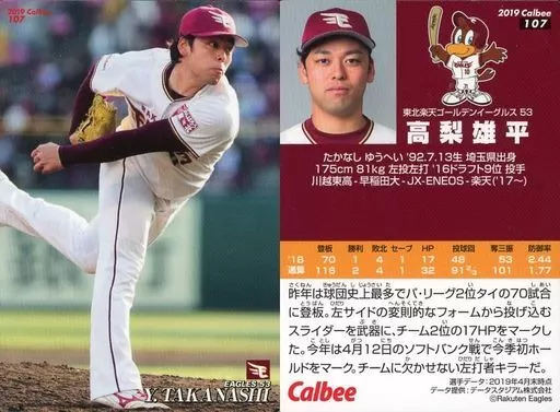 Nome do produto em japonês: スポーツ/レギュラーカード/2019プロ野球チップス 第2弾 107[レギュラーカード]:高梨雄平