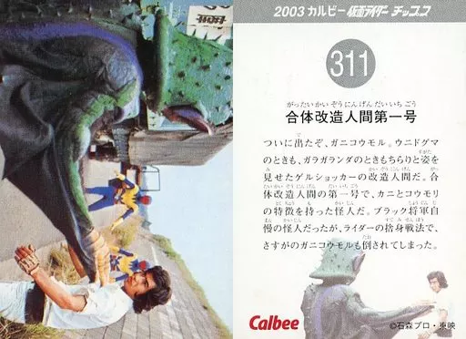 Nome do produto em japonês: アニメ系トレカ/2003 カルビー 仮面ライダー チップス 311:合体改造人間第一号