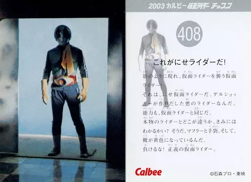 Nome do produto em japonês: アニメ系トレカ/2003 カルビー 仮面ライダー チップス 408:これがにせライダーだ!