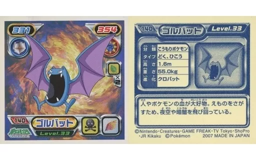 Nome do produto em japonês: コレクションシール/ノーマル/ポケットモンスターダイヤモンド&パール最強シール烈伝2 140[ノーマル]:ゴルバット