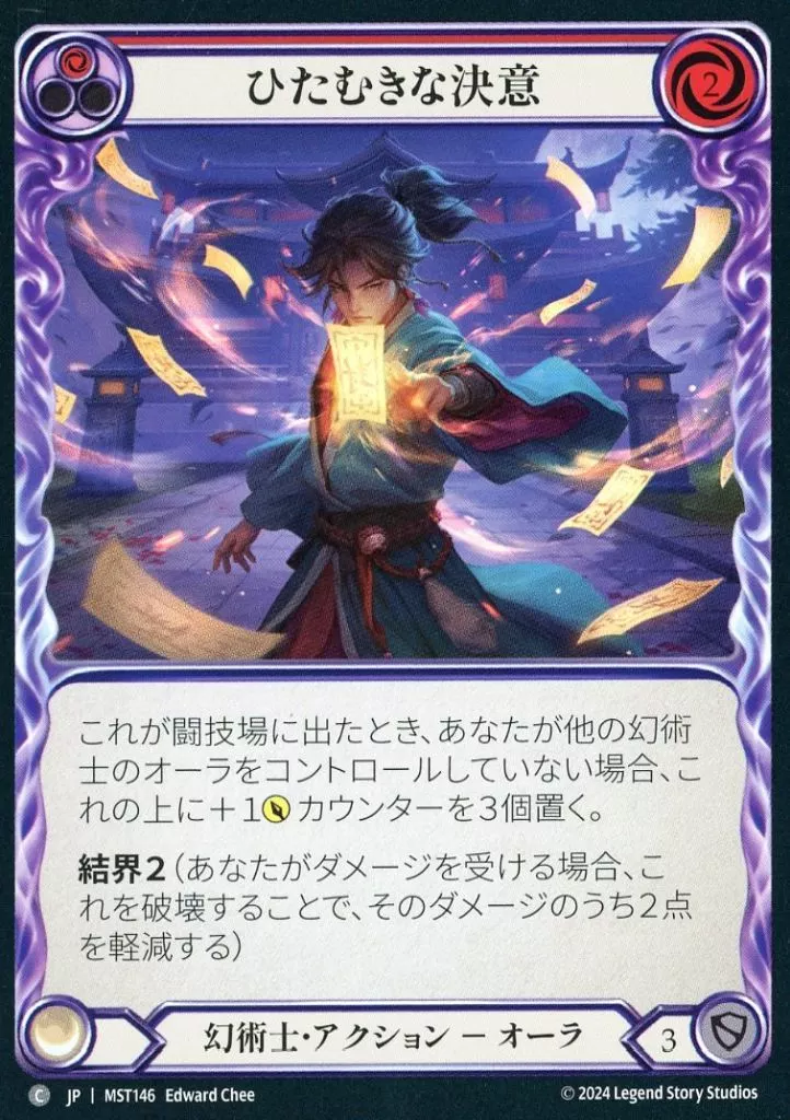 Nome do produto em japonês: Flesh and Blood/C/幻術士/日本語版/霧隠の秘境(Part the Mistveil) MST146[C]:(Rainbow Foil)ひたむきな決意 (1)/Single Minded Determination (1)