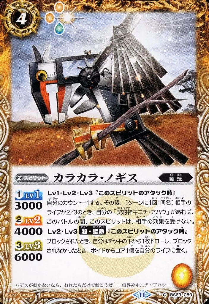 Nome do produto em japonês: バトルスピリッツ/C/スピリット/契約編:真 第2章 原初の襲来 BS69-050[C]:カラカラ・ノギス
