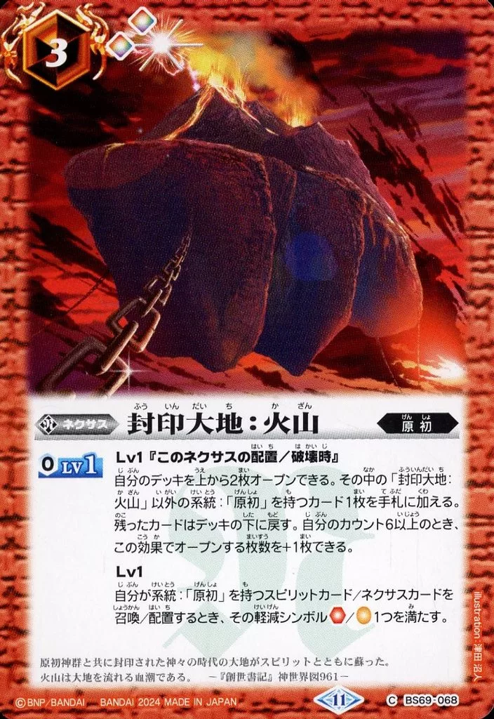 Nome do produto em japonês: バトルスピリッツ/C/ネクサス/契約編:真 第2章 原初の襲来 BS69-068[C]:封印大地:火山