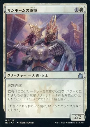 Nome do produto em japonês: マジックザギャザリング/日本語版FOIL/U/白/ラヴニカ・リマスター 0028[U]:【RVR】【FOIL】サンホームの重鎮/Sunhome Stalwart