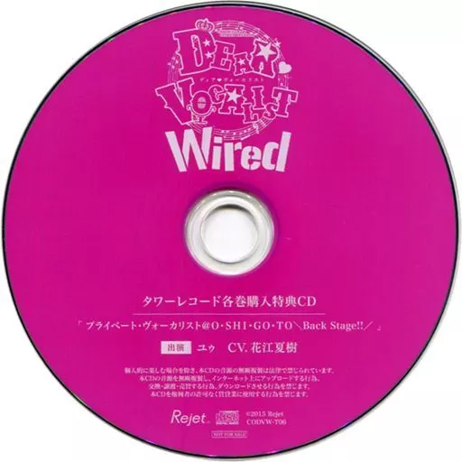 日本名: アニメ系CD ドラマCD ディア・ヴォーカリスト Wired エントリーNo.6 ユゥ (CV:花江夏樹) タワーレコード特典ドラマCD 「プライベート・ヴォーカリスト@O・SHI・GO・TO -Back Stage!!-」未修正版