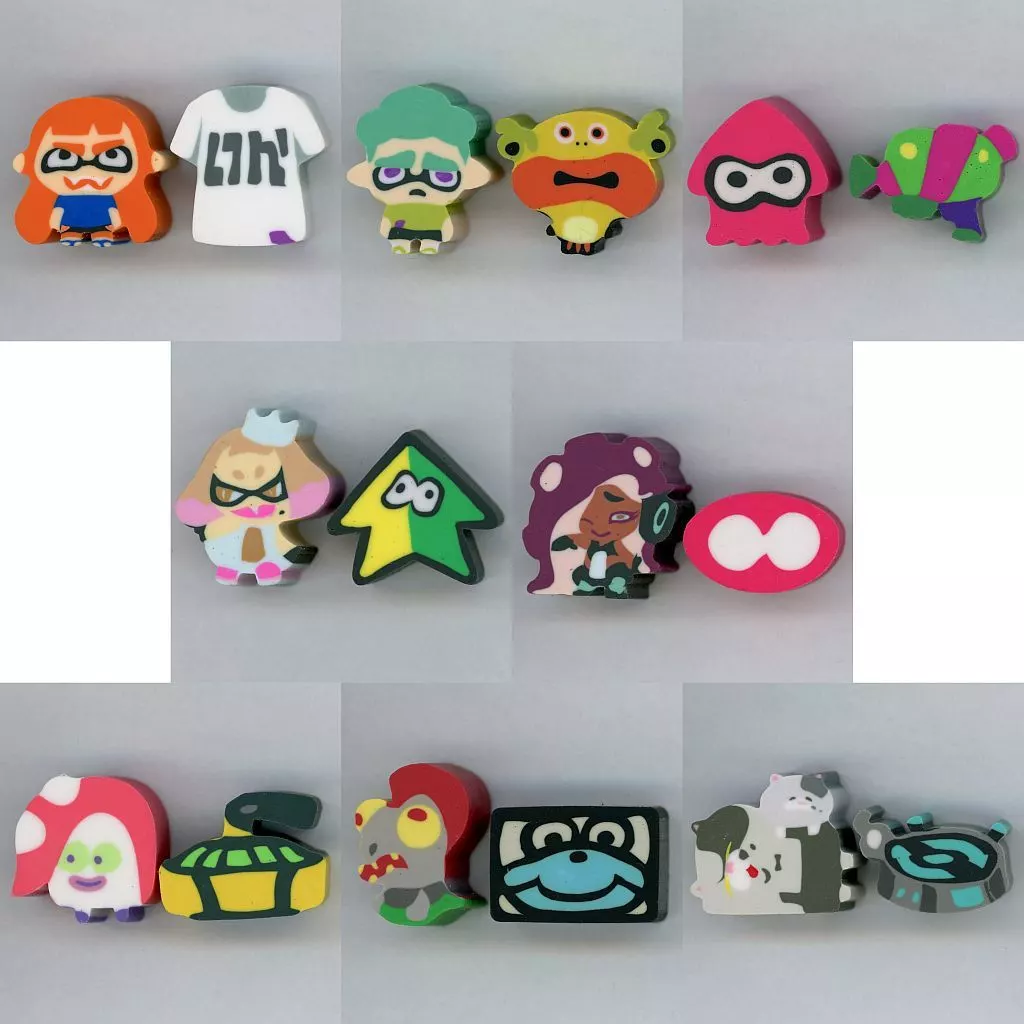 产品解说■这款产品是的共8种SET。【商品详情】女孩(橘色)&墨鱼白色男孩(霓虹绿色)&DENCHI鲶鱼墨鱼&スプラシューター姫&若叶标志饭田&ALOME奥塔利安&CARING BOMX鲑鱼&那个涂鸦裁判君&子裁判君&起点尺寸:约3×3 cm以内