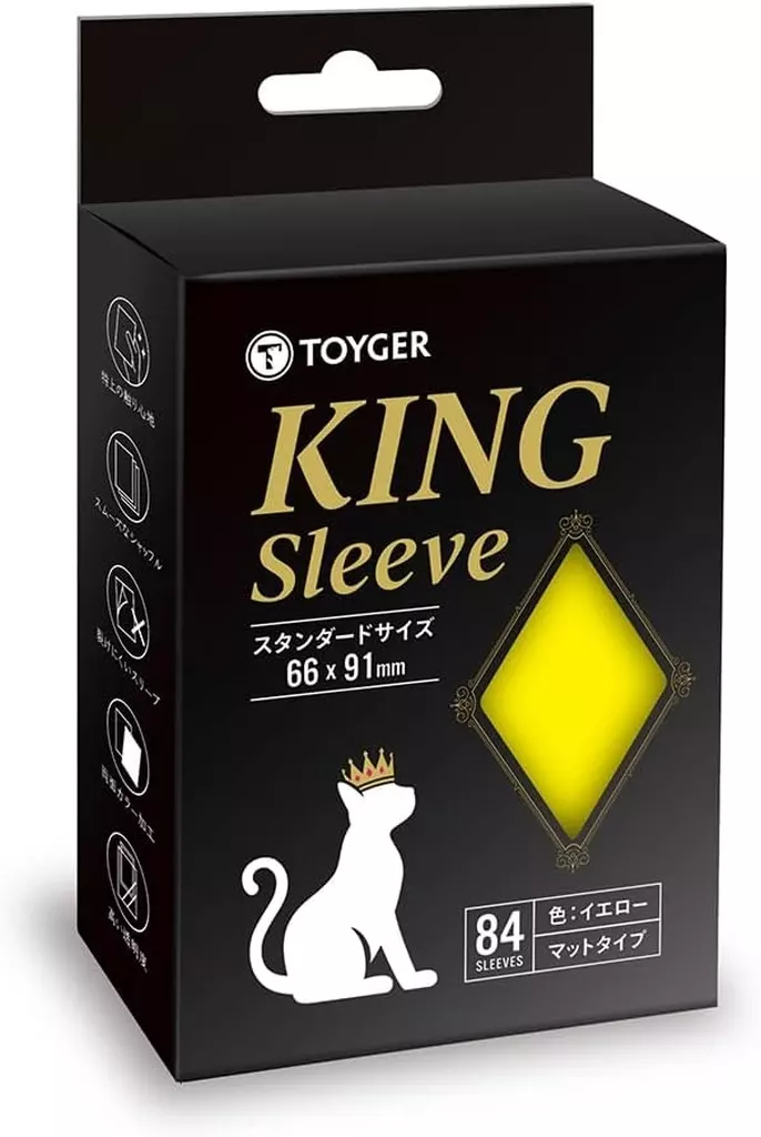 商品解说■KING袖标准型黄色登场!KING袖是追求"让玩家最容易使用"的TCG玩家最佳的袖子。基本上没有必要考虑二重、三重,请以"一重且容易使用"为形象。袖子有很多细微的差别,根据喜好的部分也很大,但是极力排除了根据喜好左右的部分,是谁都可以放心使用的袖子。【商品详情】1包:80片装尺寸:66×91 mm背面加工:无光泽款式