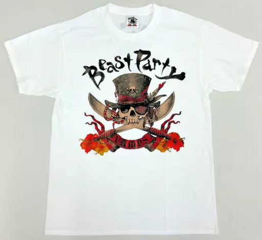 商品解说■的官方周边。HYDE亲自新插图的T恤。在细节处描绘出的入魂的LOGO插图上,以BEAST PARTY的文字及扶桑花等充分展现出冲绳岛风情。背面印花为带有海盗感的日期图案,附原创名称。【商品详情】尺寸:M(衣长约70 cm、身宽约50 cm)颜色:白色材质:棉100%※关于二手商品,可能会出现少许擦伤・污渍・磨损等情况,但不会对您在穿着・使用时造成影响。