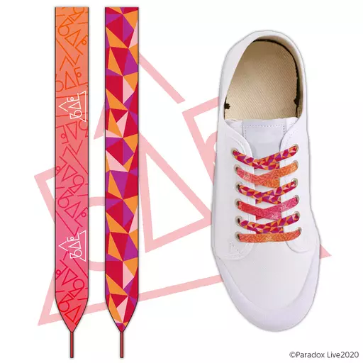 商品解说■Paradox Live推出了以BAE・The Cat's Whiskers・cozmez・恶汉奴等各队为形象的鞋带。散布着各队的LOGO及主题设计的缤纷设计。表里图案不同的双面设计,让您享受各种系法。※仅贩售鞋带。【商品详情】尺寸:宽约8 mm、长约1200 mm材质:聚酯(C)ParadoxLive2020