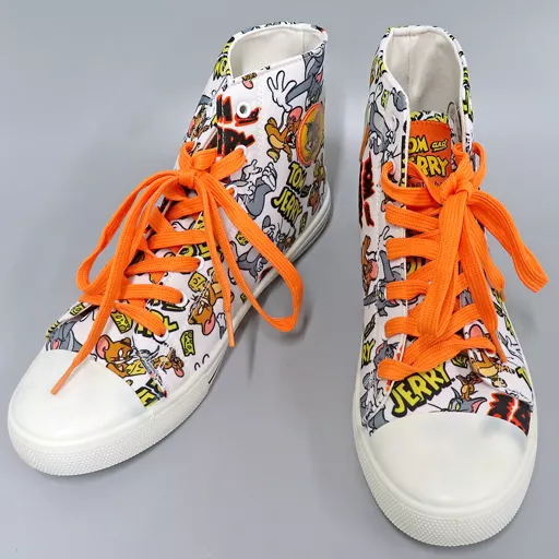 日本名: 衣類 総柄(A柄/紐オレンジ/本体白) ハイカットスニーカーアソートVer.2 25cm 「トムとジェリー」