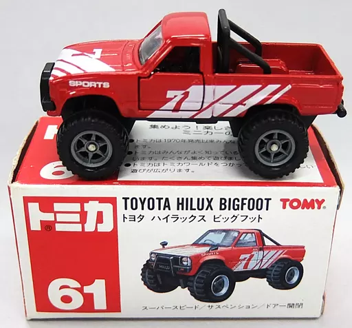 在商品解说■「Tomica中,有Toyota Hilux Big Foot#7(红色)系列。【商品详情】尺寸:全长约7.5cm样式:超高速/悬架/门开闭