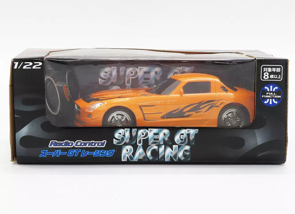 产品解说■超级GT赛车(橙色×黑色)以1/22尺寸的遥控车登场。【商品详情】主机、发射器、说明书尺寸:主机/全长约20 cm电源:主机/单三电池×4(※另售)、发射器/单三电池×2(※另售)对象年龄:8岁以上