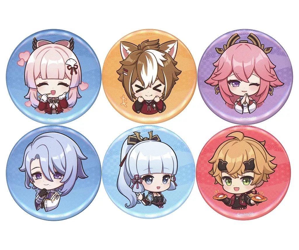 产品解说■本产品为<原神×SUSHIRO>商品的<印章插图徽章>共6种SET。【商品详情】珊瑚宫心海Goro八重神子神里绫人神里绫华Toma尺寸:直径约44 mm