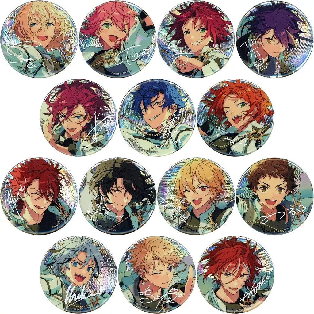 商品解说<偶像梦幻祭!"9周年纪念商品的徽章共14种SET。【商品详情】天祥院英智姬宫桃李衣更真绪仙石忍七种茨涟纯葵裕太天城磷音朔间零仁兔成鸣天满光瀑布維吹鸣上岚反向夏目尺寸:约56 mm