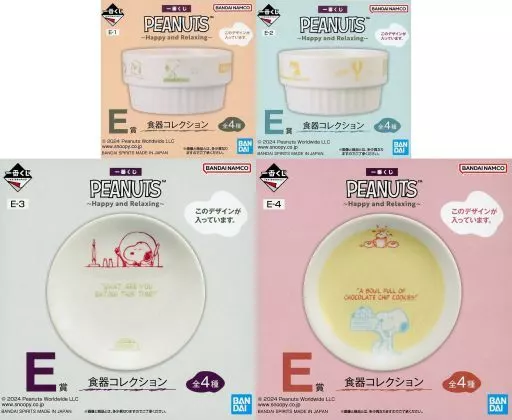 商品解说■<一番赏PEANUTS~Happy and Relaxing~>赠品。让您享受吃饭或吃点心时间的可爱设计♪共4种SET。【商品详情】集合(绿色)/炖锅菜集合(橘色)/炖锅菜史努比(白色)/拼盘史努比&木质(白色×黄色)/拼盘尺寸:[炖锅菜]全长约75 mm、[拼盘]全长约110 mm※二手商品使用前请先洗净并消毒。