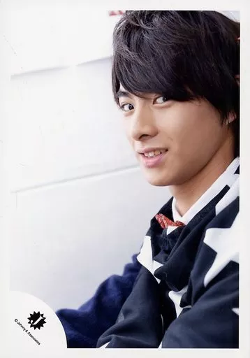 日本名: 生写真(ジャニーズ)/アイドル/KinKan KinKan/平野紫耀/バストアップ・衣装黒白・体左向き・背景白/公式生写真