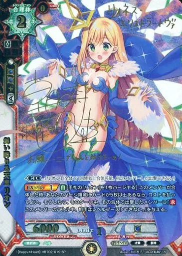 日本名: ラクエンロジック/SP/合理体/赤/[L&L-H-BT02]ひなろじブースター第2弾 Happy × Heart HBT02/019[SP]:舞い降りる天恵 リオン(朝日奈丸佳金箔押しサイン入り)