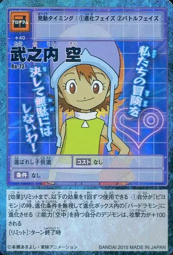 日本名: 旧デジモンカードゲーム/ホログラムカード/プログラムカード/デジタルモンスターカードゲーム デジタルモンスターカードゲームリターンズ デジモンアドベンチャー15thアニバーサリーセット Re-73[ホログラムカード]:武之内空