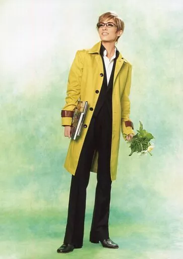 生写真(女)/宝冢歌剧团/女演员 宝冢歌剧团/明日海里奥/全身・黑黄色服装・左手草花・右手本・背景白绿・2L尺寸/花组TBS赤坂ACT希娅塔公演「汉娜的花店-Hanna's Florist-」2L不锈钢照片