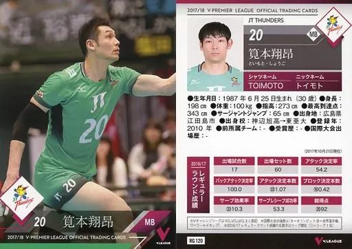 日本名: スポーツ/レギュラーカード/2017/18 V・プレミアリーグ男子公式トレーディングカード RG 120 [レギュラーカード] : 筧本翔昂