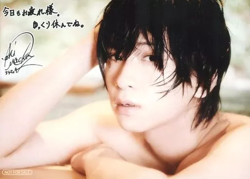 日本名: 生写真(男性)/俳優 荒牧慶彦/横型・バストアップ・温泉・印刷サイン、メッセージ入り/写真集「編集長・荒牧慶彦 Challenge」アニメイト特典ブロマイド