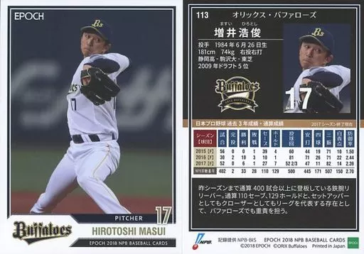日本名: スポーツ/レギュラーカード/オリックス・バファローズ/EPOCH 2018 NPB プロ野球カード 113 [レギュラーカード] : 増井浩俊