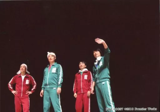 日本名: 生写真(男性)/声優 FWZ-00037:小野坂昌也・小西克幸・野島裕史・竹本英史/ライブフォト・横型・膝上・ジャージ・緑・赤・白・タオル・小西左手上げ・背景黒/「小野坂・小西のO+K(OTASUKE)」小川Pチョイス生写真セット