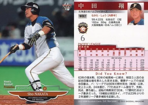 日本名: BBM/プロモーションカード/北海道日本ハムファイターズ/BBM2013 ベースボールカード 1stバージョン 週刊ベースボール付録 WB2[プロモーションカード]:中田翔